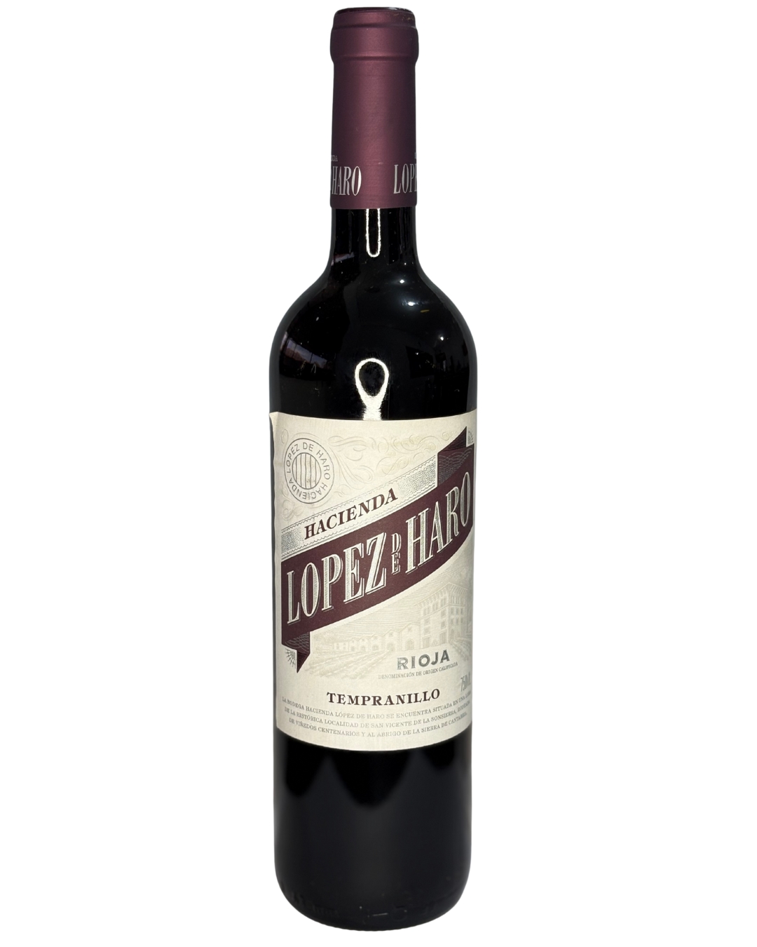 Considerada uma vinícola privilegiada localizada no coração de La Rioja Alta, a Bodega Hacienda López de Haro cultiva uma das melhores uvas nas áreas vitivinícolas da Denominação de Origem Rioja: a tempranillo. Em San Vicente de la Sonsierra estão as melhores e mais antigas vinhas da variedade capaz de produzir um autêntico vinho de cor cereja com tons avermelhados, com aromas de frutas pretas e maduras e notas de creme, baunilha e cacau provenientes da passagem em barricas de carvalho francês e americano. No paladar mostra perfil elegante e agradável com taninos aveludados e boa estrutura do começo ao fim.