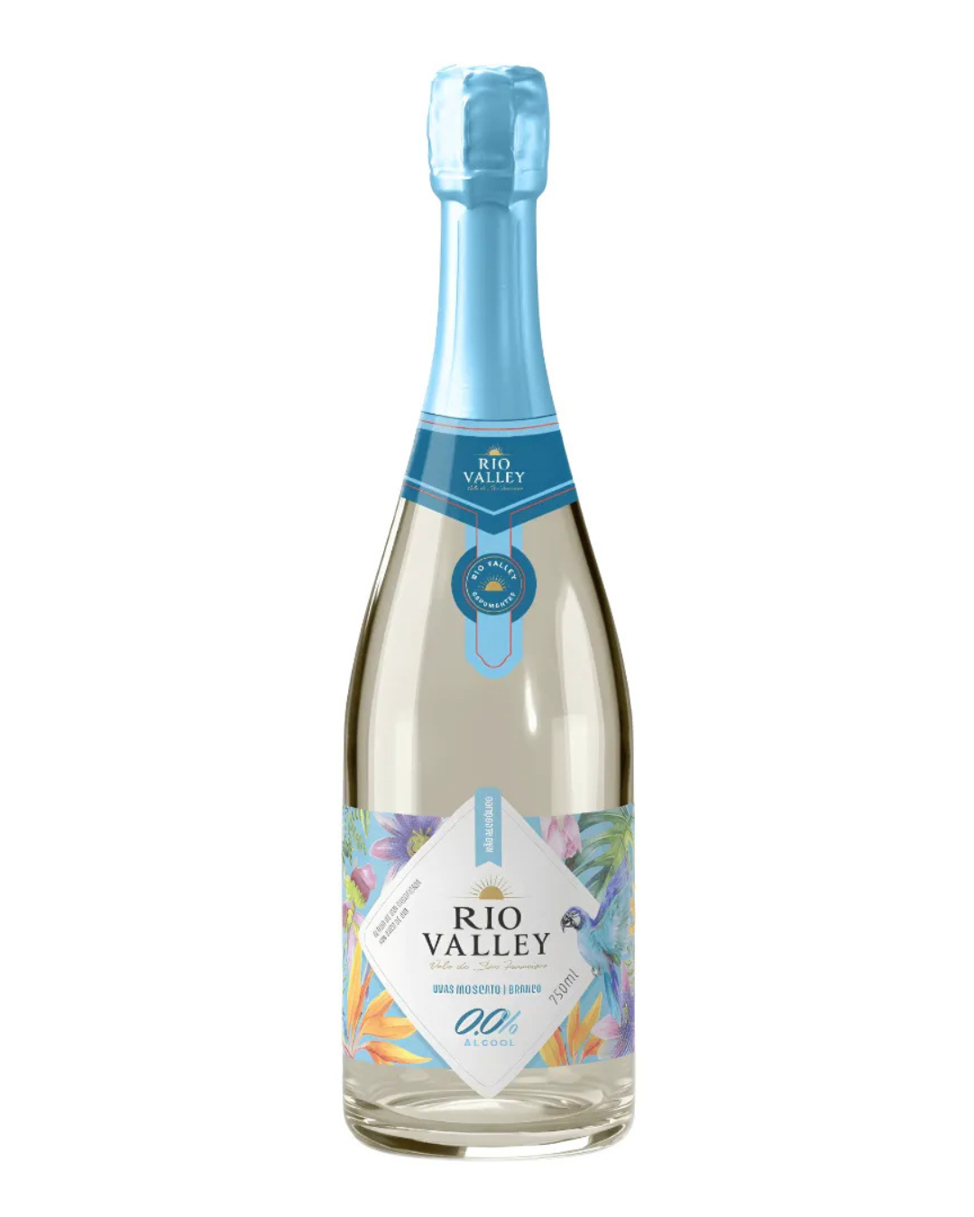 O Rio Valley Moscatel Branco 0,0% é um espumante sem álcool, elaborado com uvas Moscatel cultivadas sob o sol do Vale do São Francisco.